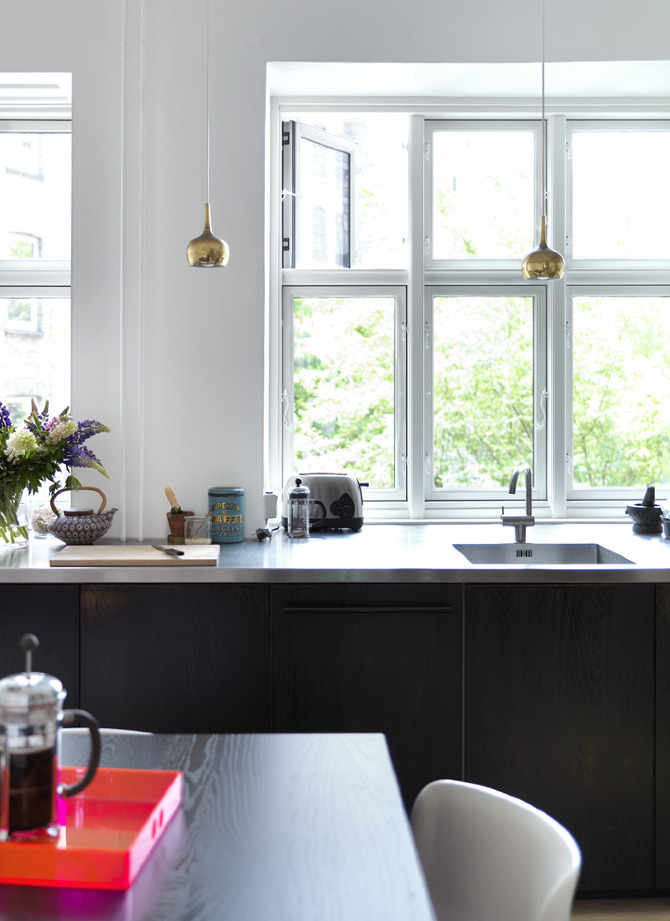 | Ihana keittiö, tai ainaski pala sitä. Tummat alakaapit vois olla käytännölliset. Tykkään myös tasosta. | Kuva täältä |